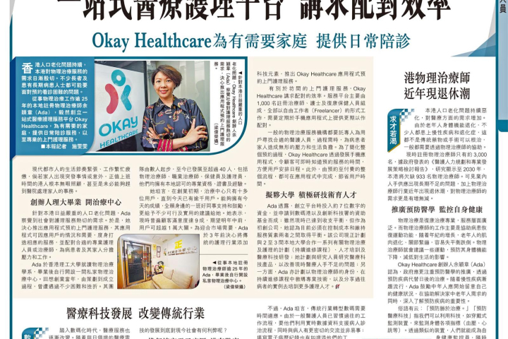 Okay Healthcare 創辦人 – 余小姐早前受 <<香港經濟日報>> 訪問 分享創立應用程式的初衷及過程。