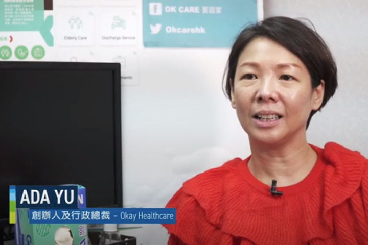 余小姐於信報「StartupBeat創科鬥室」系列訪問中分享OK Care如何運用嶄新的手機應用程式平台,尋找和解決用戶的護理服務需要。