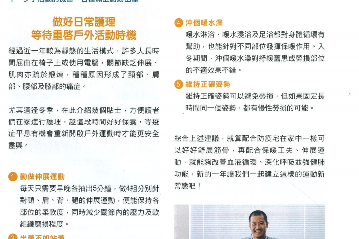 物理治療師余小姐分享疫情下在家中維持良好日常護理及鍛鍊。
