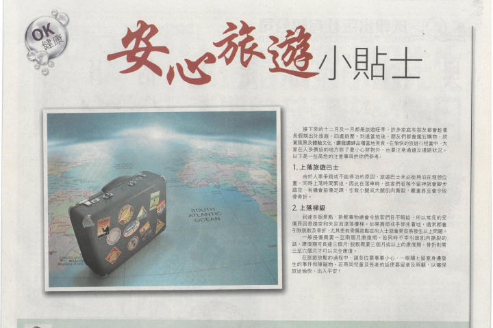 余小姐 今日於成報專欄中分享關於出外旅遊的注意事項。